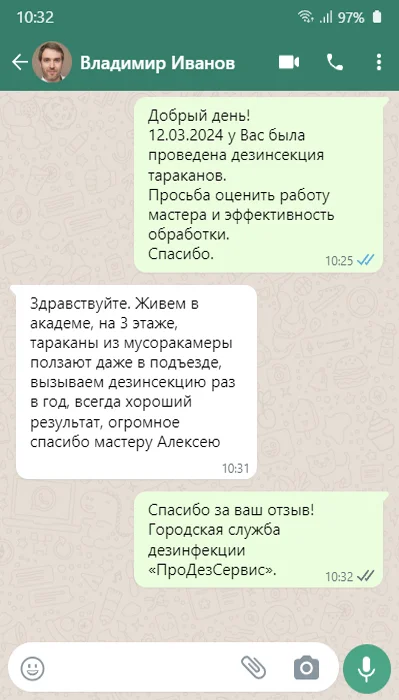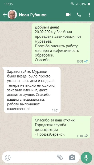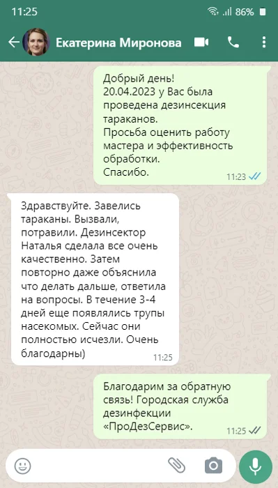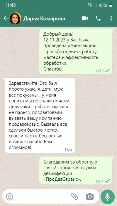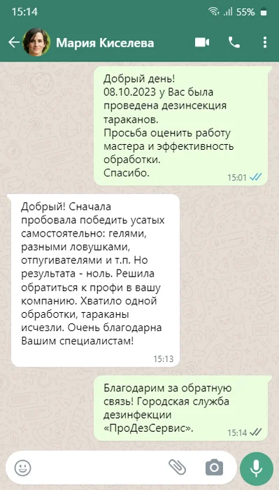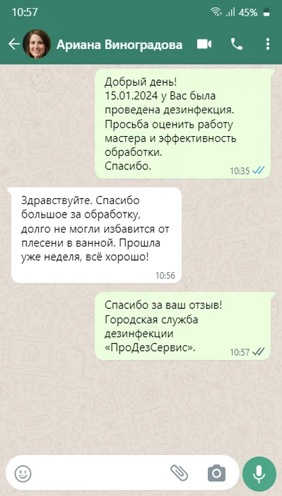 Дежурный диспетчер позвонит Вам в течение 10 мин., чтобы подтвердить скидку и подробно проконсультировать по способам обработки и профилактике.